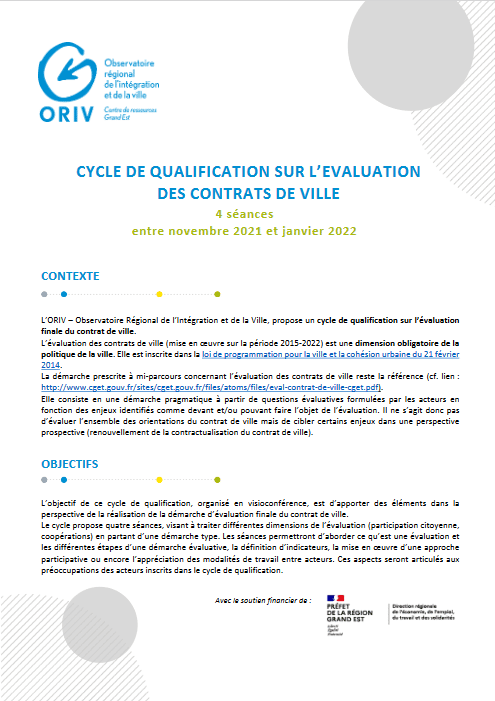 L’ORIV a proposé en visioconférence, entre novembre 2021 et janvier 2022, un cycle de qualification sur l’évaluation finale du contrat de ville.