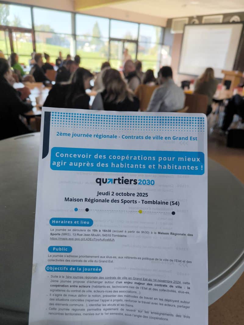 La 2ᵉ journée régionale des contrats de ville en Grand Est a eu lieu le jeudi 2 octobre à la Maison Régionale des Sports à Tomblaine. Elle était organisée par l'ORIV, en lien avec les services de l’État en Région – la DREETS Grand Est et la Préfecture Grand Est – en partenariat avec le Réseau DSU Grand Est.